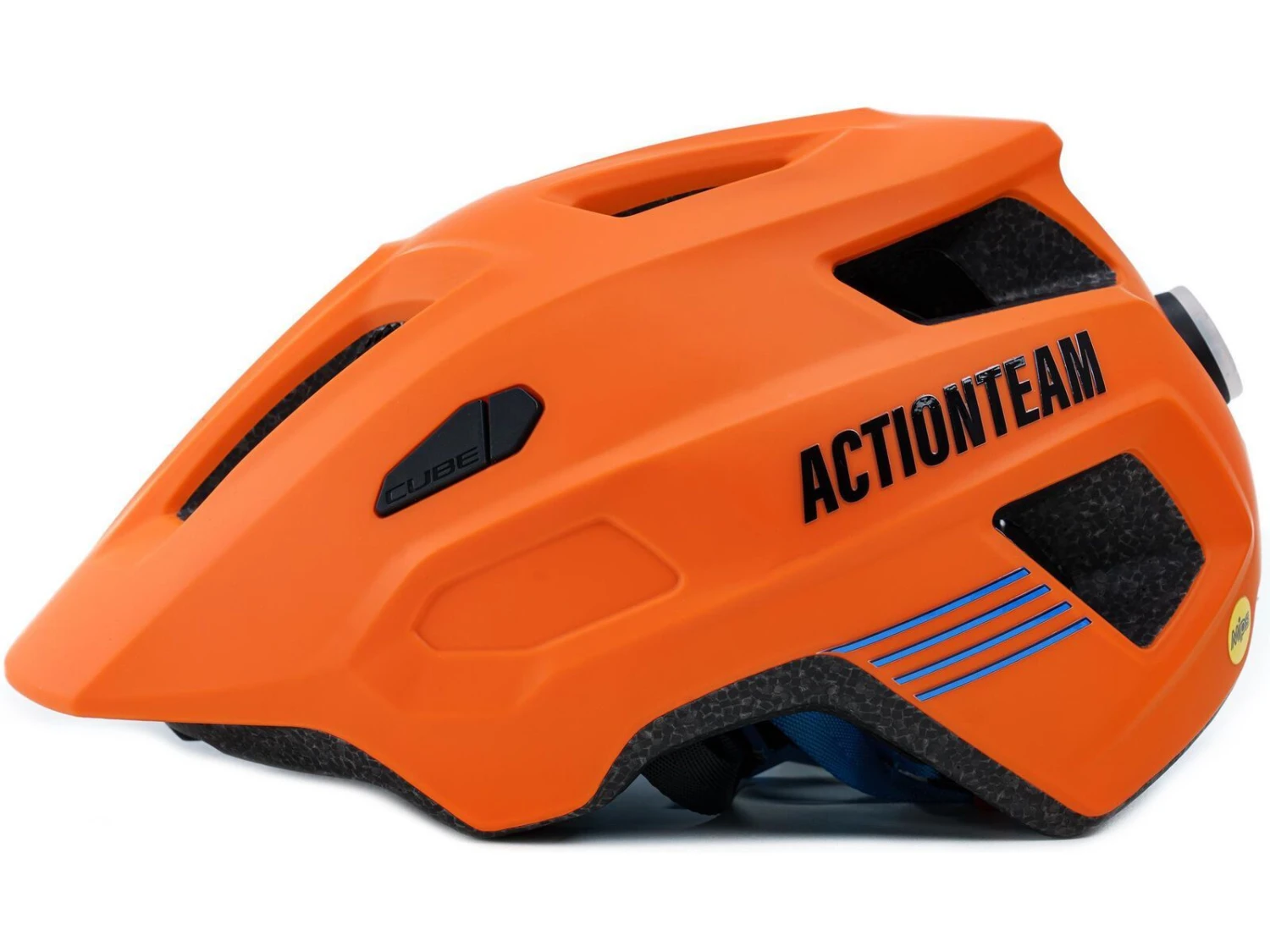 Wie bei den Großen spielt der Cube Helm Linok X Actionteam in der ersten Liga der Kinderhelme. Er ist ein waschechter Enduro-Helm, mit einem großen integrierten Visier, tiefer Heckpartie und toller Belüftung. Zudem sorgt ein adaptiertes LED-Licht für aktive Sicherheit. Den Erwachsenen kannst du damit mal richtig zeigen, wem der Trail gehört! Den üblichen Standard übertrifft dieser Helm durch das integrierte MIPS-System, das wirkungsvoll deinen Kopf vor Rotationskräften schützt.